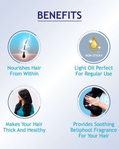- The fragrant aroma of the oil provides a soothing perfume of beliphool in the hair.