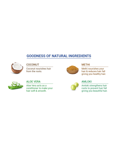 - Ingredients: Coconut, Methi, Amla & Aloe vera.