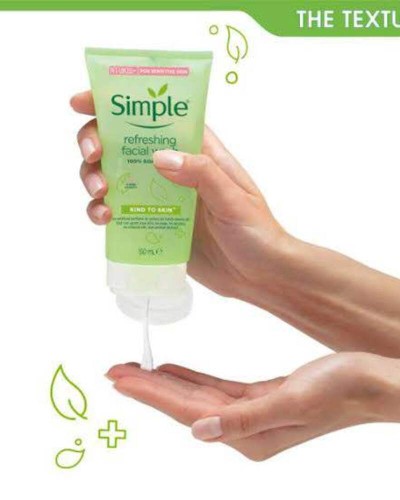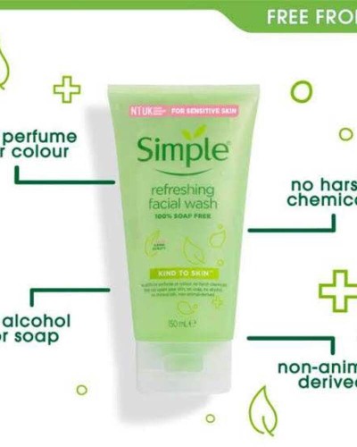 Simple Kind To Skin Refreshing Facial Gel Wash is designed for those seeking a refreshing cleanse without harsh chemicals. It is suitable for all skin types, including sensitive skin. The soap-free formula efficiently removes dirt, oil, and impurities while preserving the skin's natural moisture balance. The lightweight gel texture generates a soft lather that rinses cleanly, leaving the face feeling fresh and revitalized. Free from artificial perfumes or colors, it is perfect for daily inclusion in your skincare regimen.